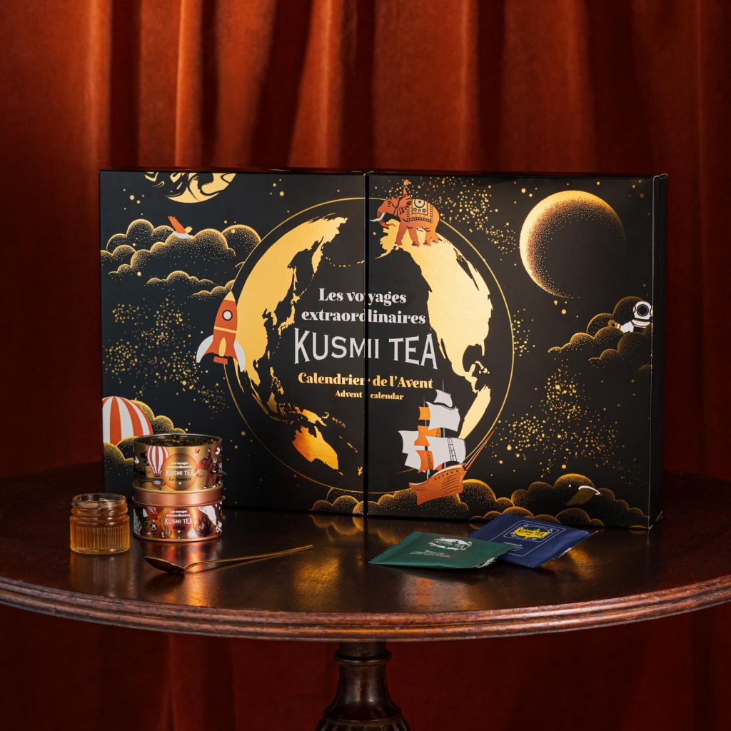- Adventný kalendár Kusmi Tea vám spríjemní každý deň adventu vďaka starostlivo vybraným čajovým prekvapeniam ukrytým za jednotlivými okienkami.