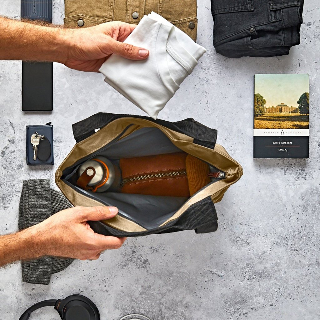 - materiál: oceľ (zapínanie na zips), polypropylén (popruh), recyklovaný PET polyester (vonkajšia tkanina), BPA a PEVA bezpečná pre potraviny (vnútorná podšívka so zvarenými švami)