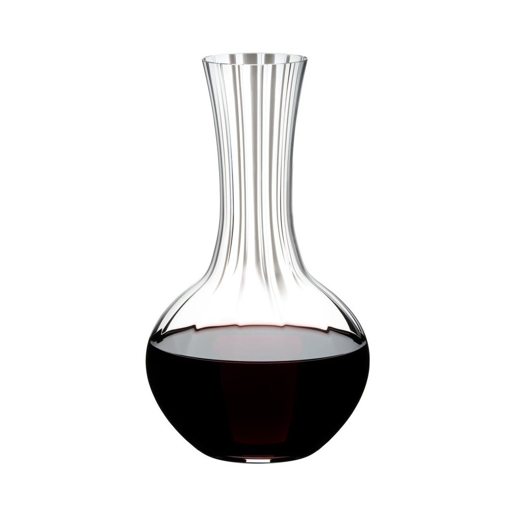 Krásny doplnok k prelomovej kolekcii pohárov Riedel Performance. Jednoduchý dizajn s opticky fúkaným sklom odkazuje na moderné techniky fúkaného skla, ktoré vznikli v Benátkach. Je strojovo vyrobená, od ručne fúkaného skla to rozoznáte len veľmi ťažko. Karafa je určená pre jednu fľašku vína a môžete ju umývať v umývačke riadu.