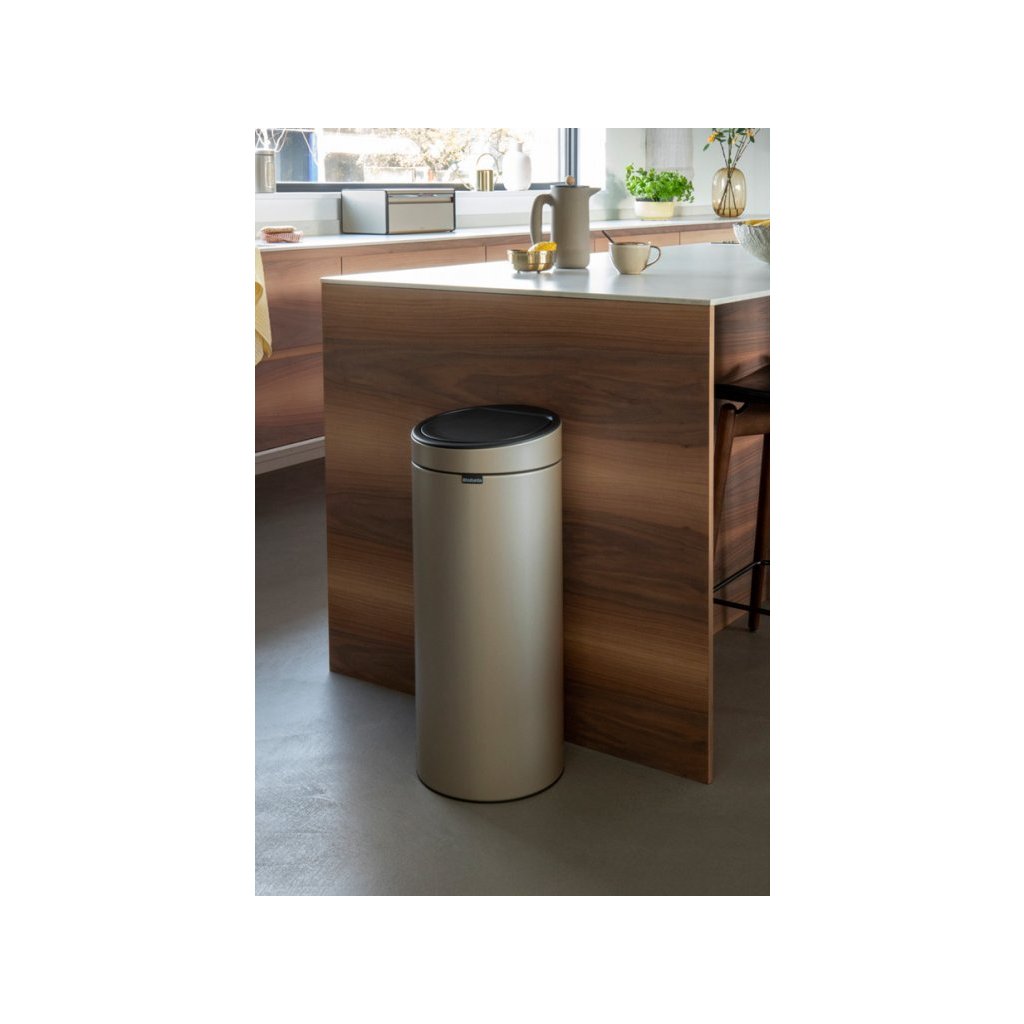 Dotykový odpadkový kôš s objemom 30 litrov pojme odpad celej veľkej domácnosti a pritom nezaberie veľa priestoru. Jedinečný uzáver Soft-Touch umožňuje jednoduché otváranie a zatváranie jednou rukou. Špeciálne ventilačné otvory proti vzniku pretlaku počas vyberania plného vrecka.Hlavné prednosti dotykového koša Touch Bin NEW Brabantia: