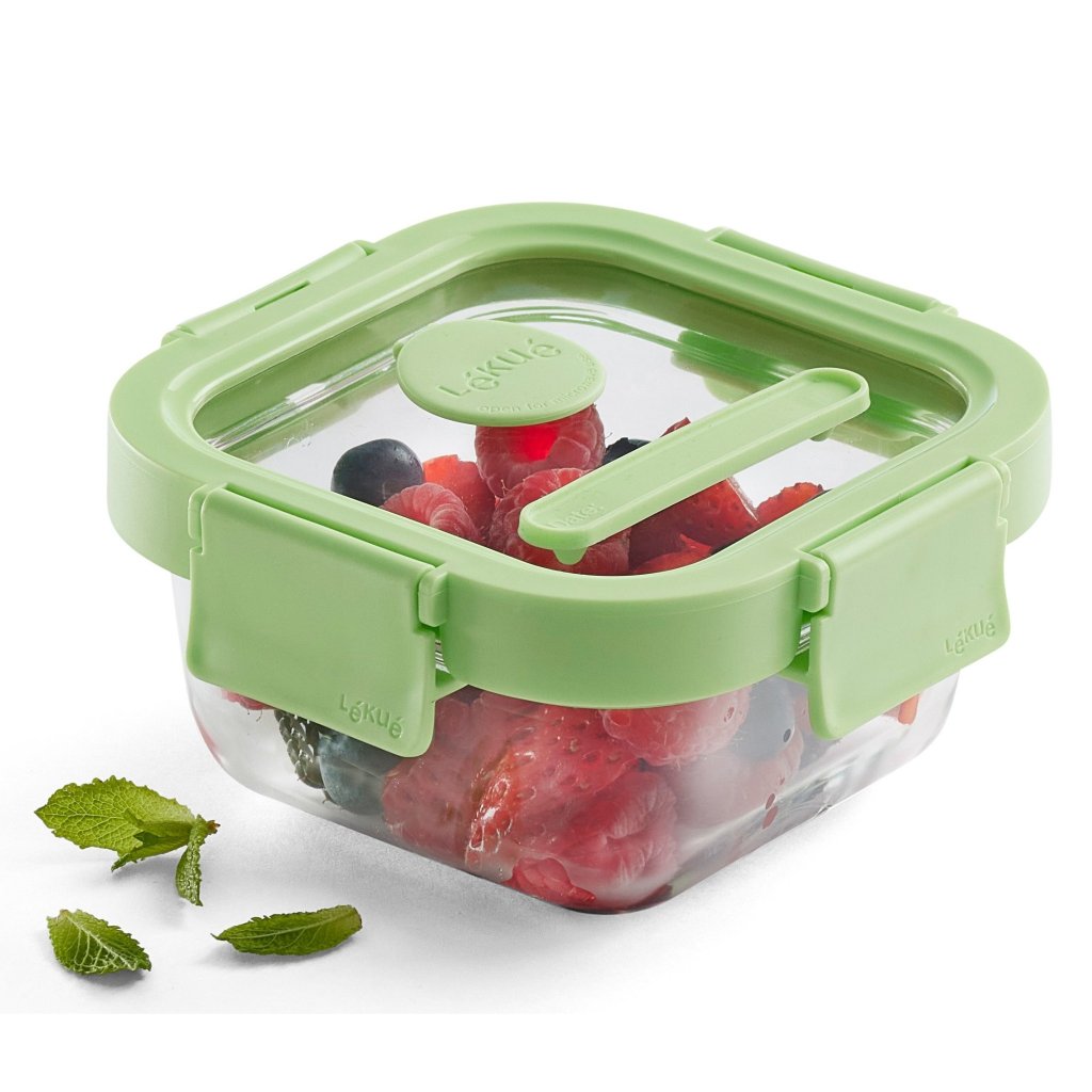 Dóza na potraviny 320 ml, štvorcová, sklenená, Lékué