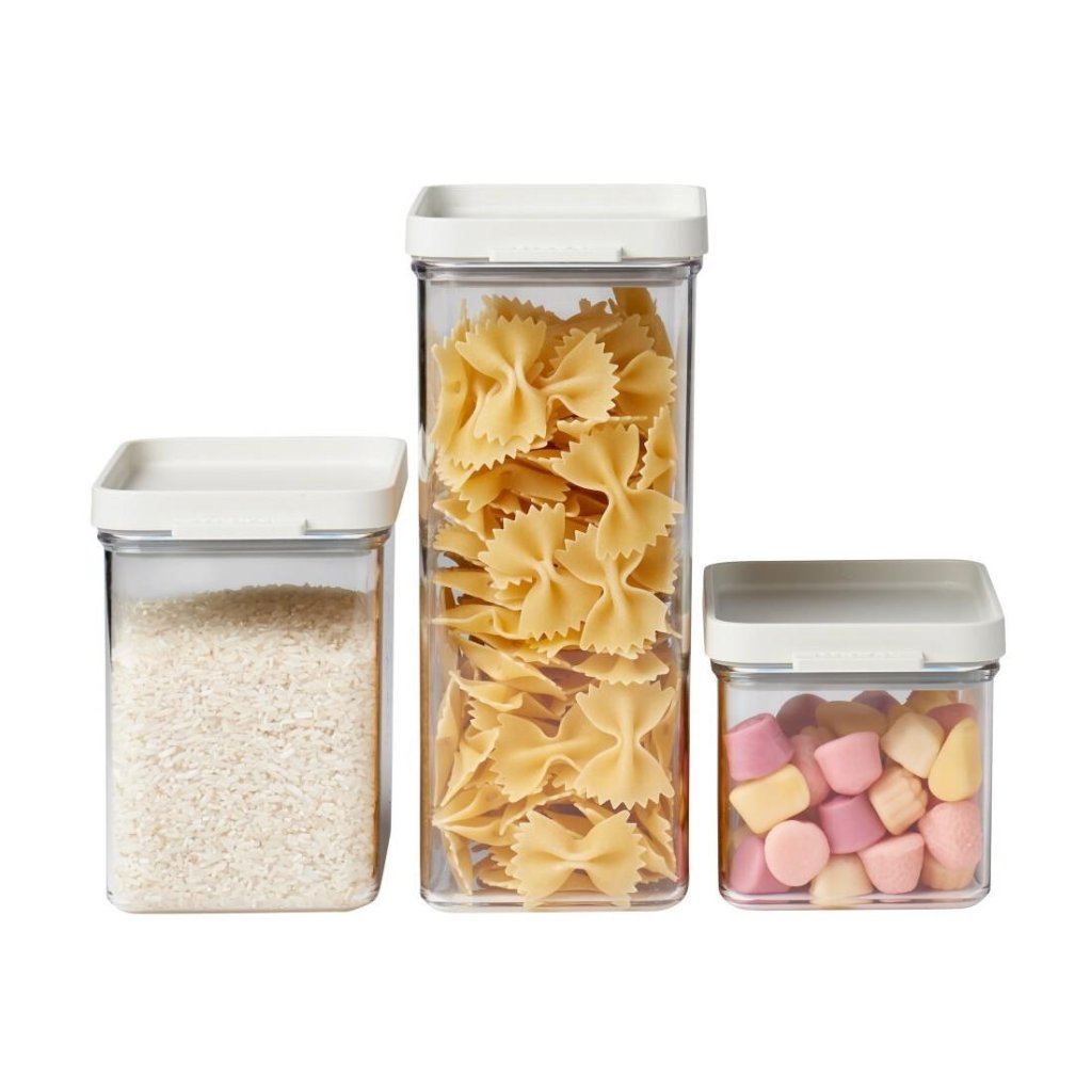 - vhodné na skladovanie širokej škály ingrediencií, ako sú múka, cestoviny, obilniny, ryža alebo káva, ktoré vďaka tesneniu zostanú dlho čerstvé
