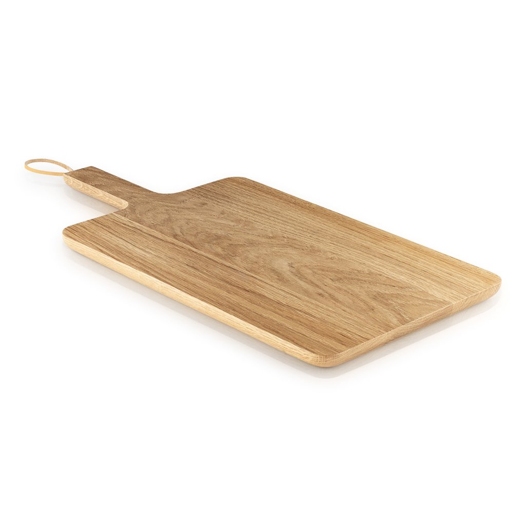 Drevená doska na krájanie Nordic kitchen od dánskej spoločnosti Eva Solo je vyrobená z masívneho dubového dreva. Vďaka rôznej štruktúre dreva je každý z nich originál. Dosku na krájanie môžete použiť na krájanie zeleniny, mäsa, ale aj na servírovanie klobás alebo syra.