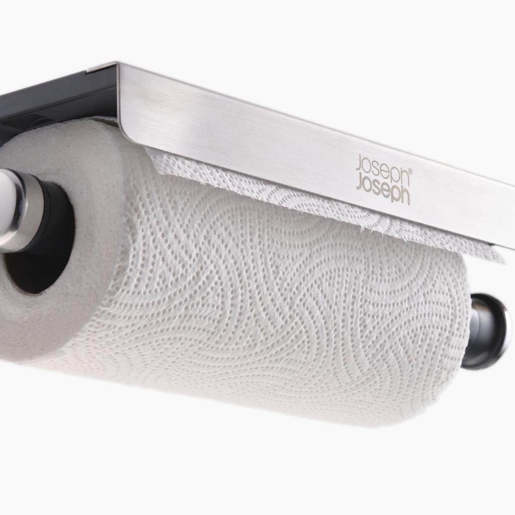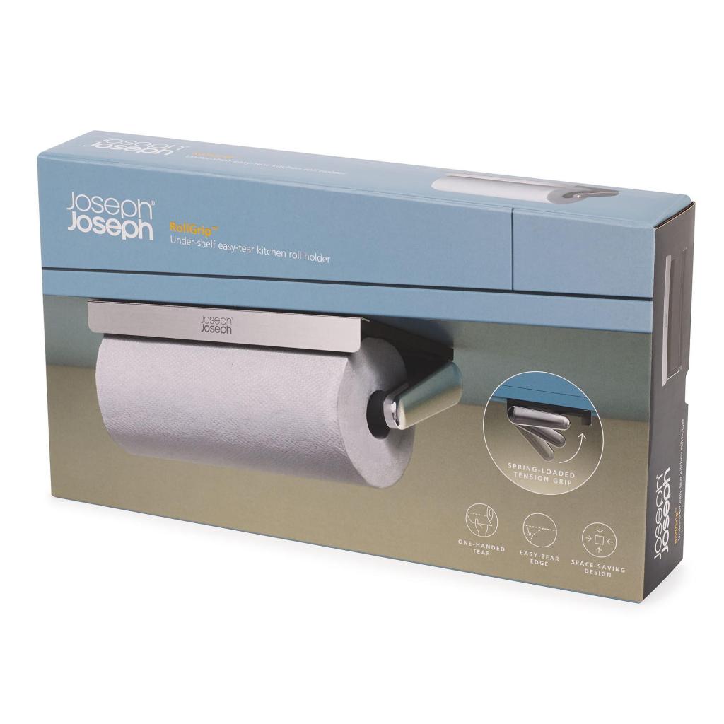 - Držiak na kuchynské utierky z nehrdzavejúcej ocele ROLLGRIP je praktickým riešením na uvoľnenie pracovnej plochy a prehľadné uloženie papierových utierok priamo pod hornú skrinku.