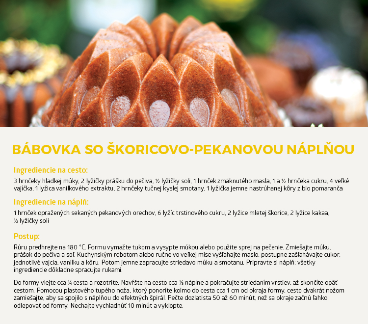 Názov pre robustné kovové formy na bábovku Bundt® bol firmou patentovaný už v roku 1950. Zo súčasnej klasickej i sezónnej ponuky tvarov a veľkostí si vyberie skutočne každý. Mladé kreatívne pekárky oslnia svojich priateľov modernými minitortičkami s ostrými hranami, zatiaľ čo babičky si na svoj životom overený recept vyberú najklasickejšiu bábovku.