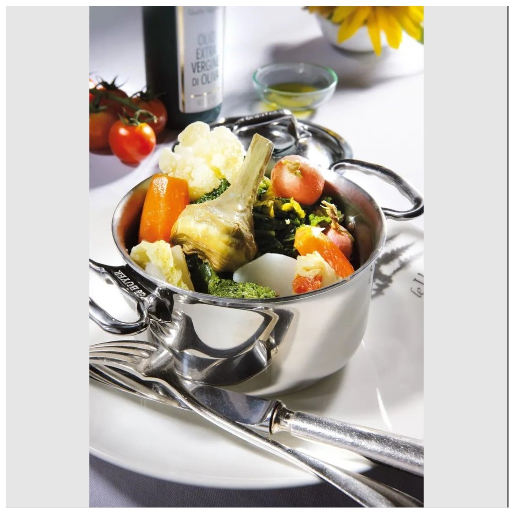 Vysokokvalitný nerezový riad série Affinity je vyrobený z päťvrstvového materiálu s povrchom lešteným do vysokého lesku. Výroba z jedného kusu materiálu, krásne zaoblené tvary spolu s nitovanými rukoväťami a držadlami sú znakom kvalitného remeselného spracovania, ktoré je typické pre renomovanú francúzsku značku de Buyer .