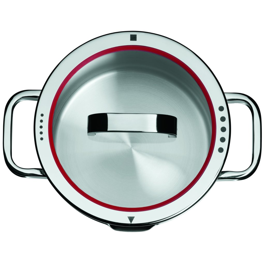 Riad Function 4 je tiež vybavený širokým zahnutým okrajom na jednoduché vylievanie obsahu. Nedochádza teda k nechcenému odkvapkávaniu alebo stekaniu tekutiny po vonkajších stenách hrnca. Vnútorná odmerná stupnica zase zjednodušuje meranie optimálneho množstva tekutín. Hrnce sa dobre čistia, je samozrejme možné umývať ich v umývačke riadu.