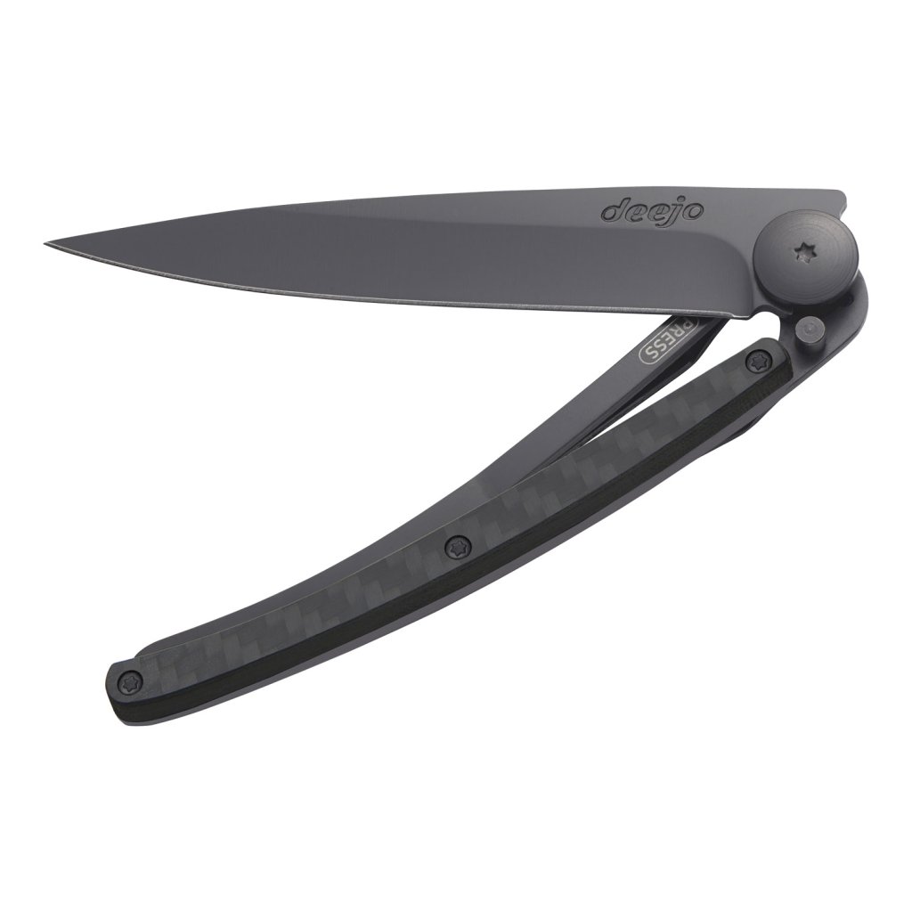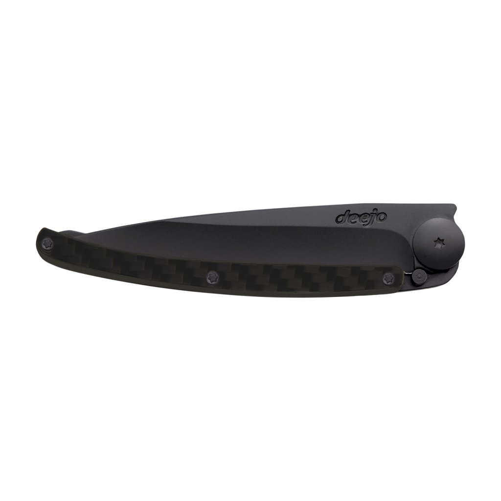 Vreckový nôž 37 g, ultraľahký, čierny, rukoväť z uhlíkových vlákien, deejo