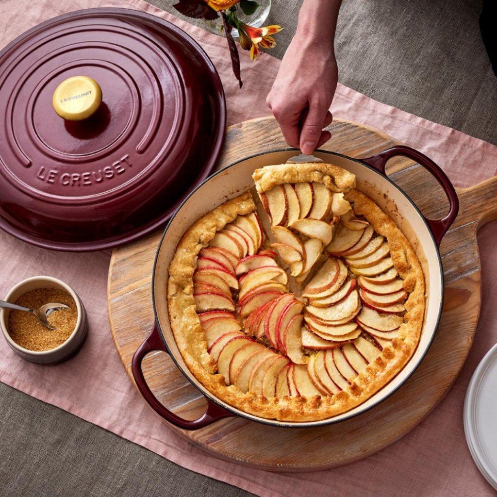 - Plochý liatinový kastról Le Creuset vo farebnom prevedení GARNET je vyrobený vo Francúzsku a patrí medzi legendárne kúsky značky, ideálne na dusenie, vyprážanie, pečenie aj zapekanie pre 4 - 6 osôb.