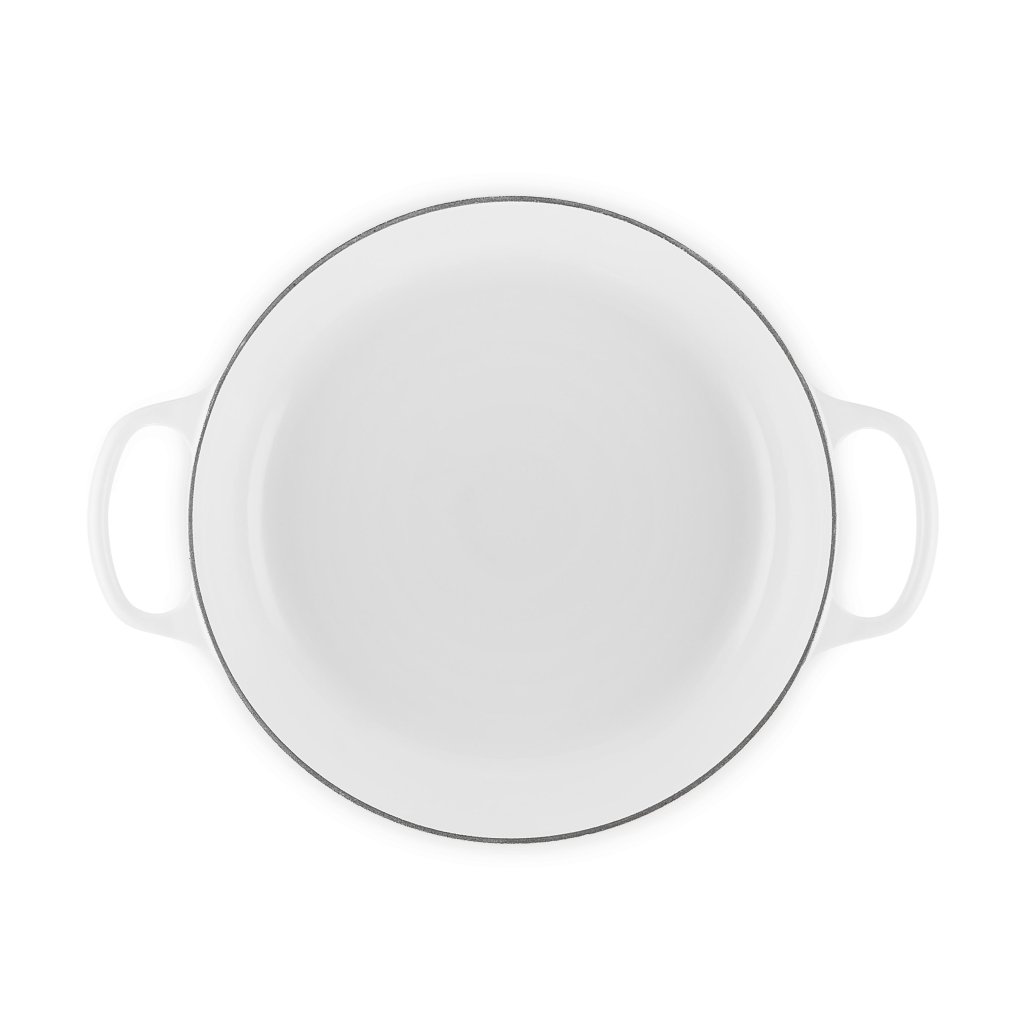 - Plochý liatinový kastról Le Creuset vo farebnom prevedení WHITE je vyrobený vo Francúzsku a patrí medzi legendárne kúsky značky, ideálne na dusenie, vyprážanie, pečenie aj zapekanie pre 4 - 6 osôb.