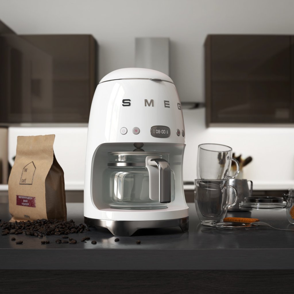 Kávovar na prekapávanú kávu DCF02WHEU, biela, Smeg