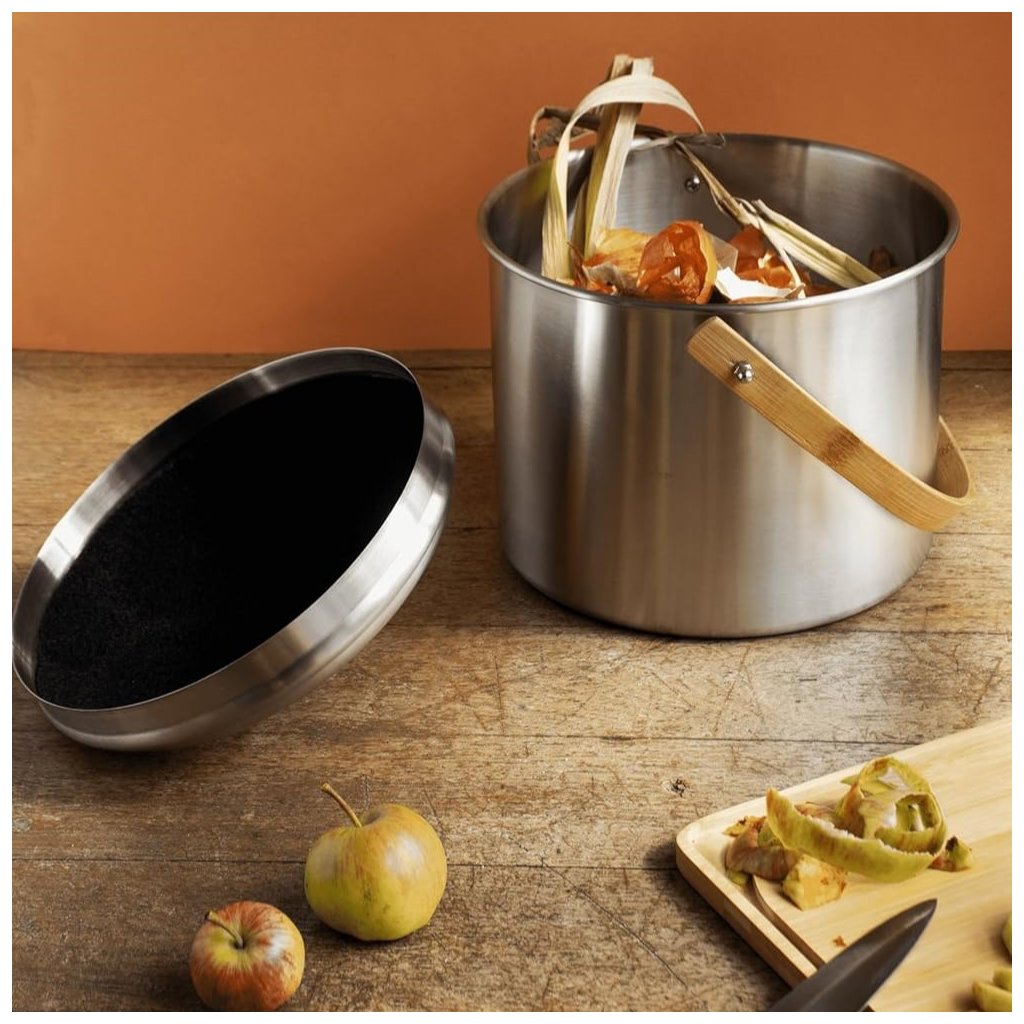 Kompostér NBA233 7 l, strieborná, oceľ / bambus, Pebbly