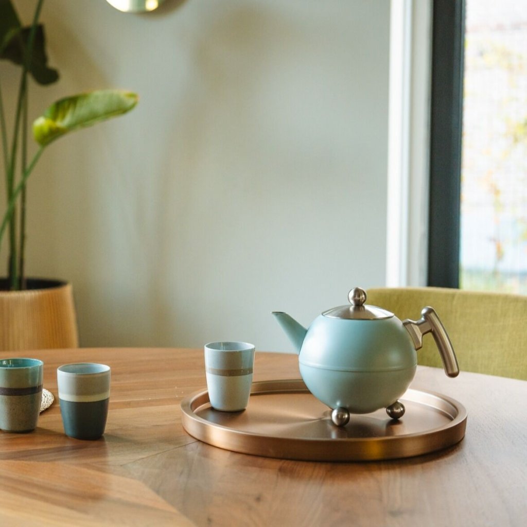Konvička na čaj DUET BELLA RONDE 1,2 l, svetlo modrá, nerezová oceľ, Bredemeijer