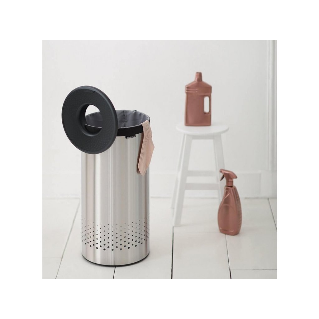 Kôš na bielizeň 35 l, s plastovým vekom, matná oceľ, Brabantia