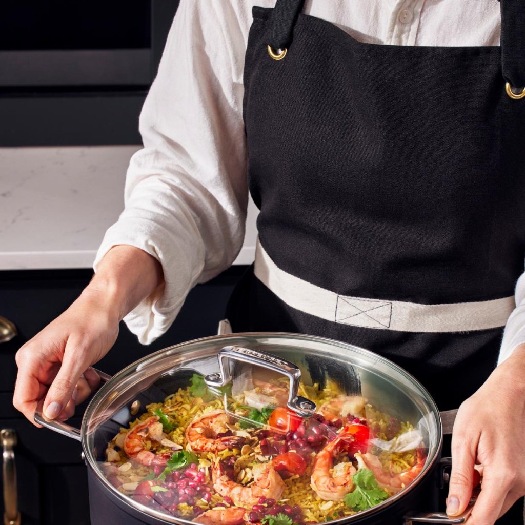 - Kuchynská zástera Le Creuset chráni odev pred kvapkami, rozliatím a nečistotami, a pritom dodáva varenie profesionálny vzhľad a pocit istoty pri každom pohybe v kuchyni.