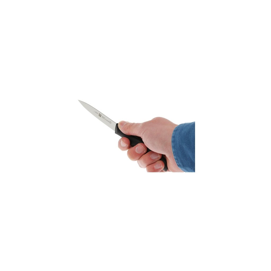 Lúpací nôž Twin Grip z kolekcie Twin Grip od spoločnosti Zwilling má krátku rovnú čepeľ s dĺžkou 9 cm. Tento malý nôž je ideálny na lúpanie a krájanie ovocia a zeleniny a na krájanie menších surovín.