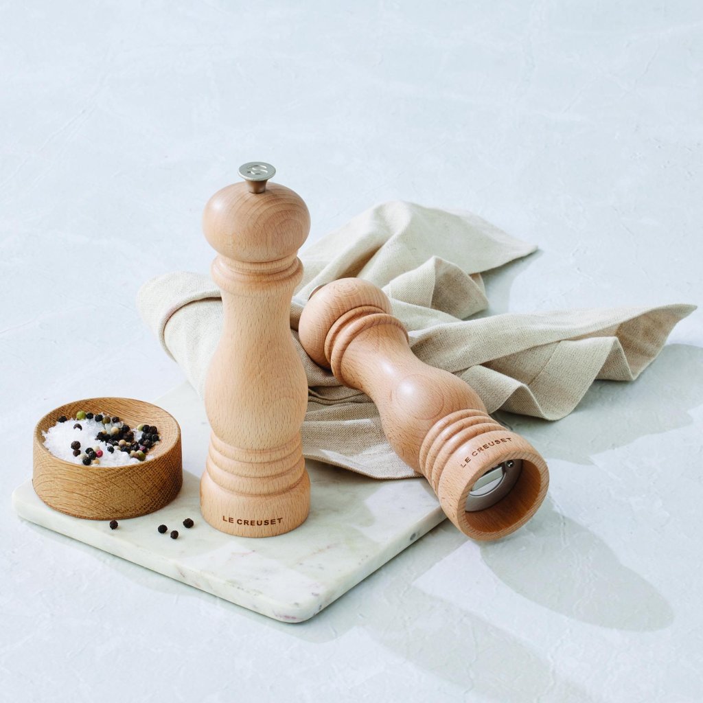 - Drevený mlynček na soľ Le Creuset vyniká svojim prírodným vzhľadom z bukového dreva, ktorý dodáva každej kuchyni teplý a elegantný nádych.