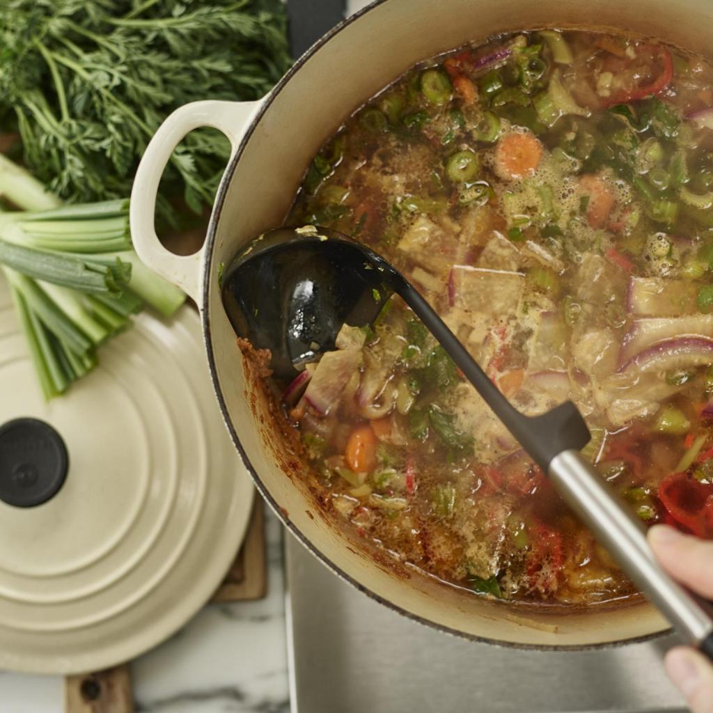 - Ergonomicky tvarovaná rukoväť poskytuje istý a pohodlný úchop pri naberaní polievok, omáčok alebo ďalších tekutých pokrmov.