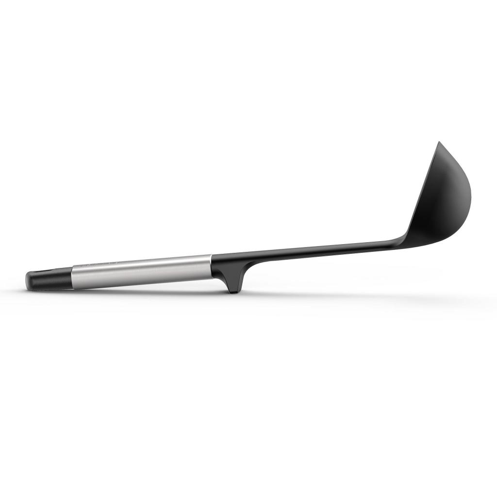 - Integrovaná opierka na rukoväti zaisťuje, že hlava naberačky sa nedotýka pracovnej plochy, keď ju počas varenia odložíte.