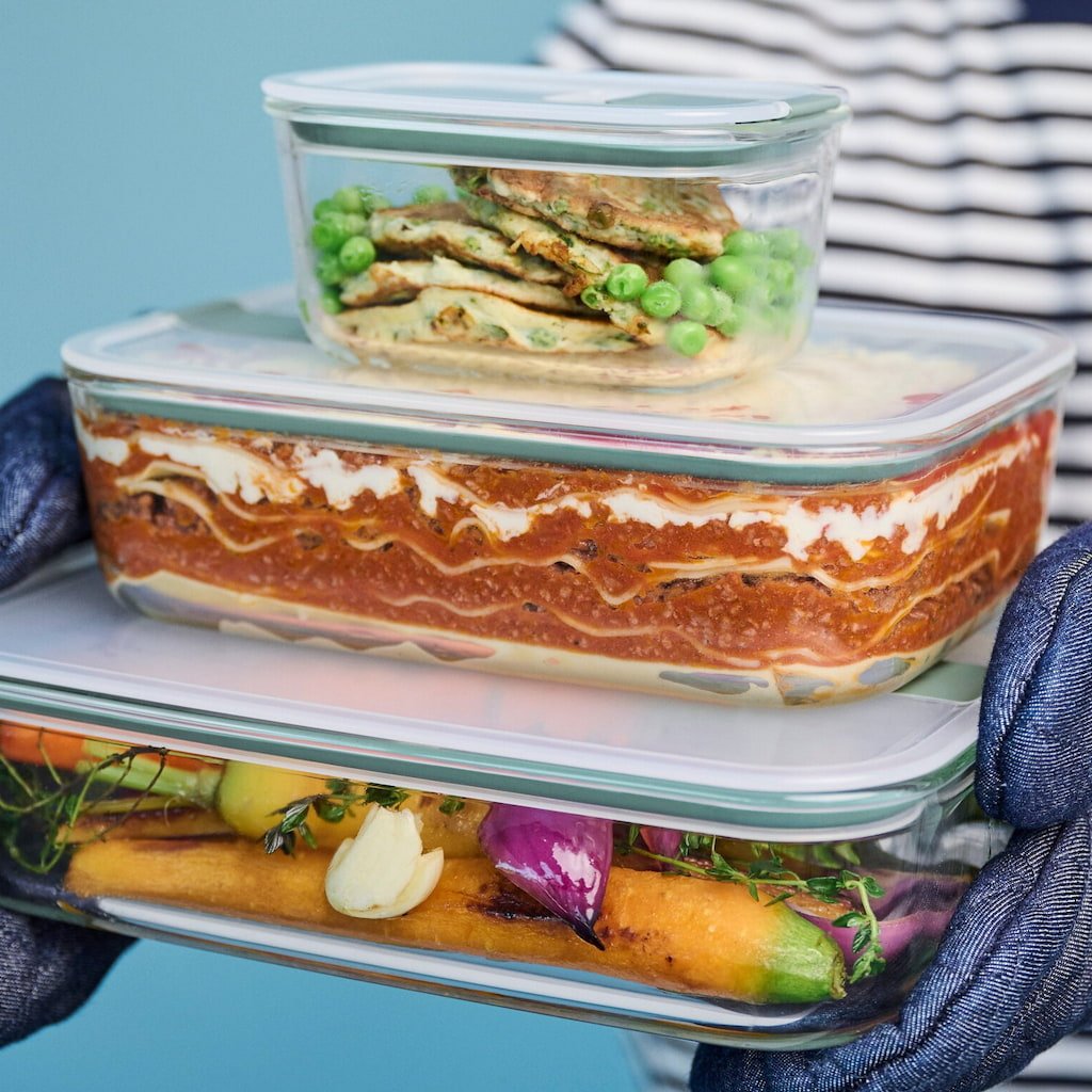 - môžete v nej pripraviť pečené jedlo, uložiť ho do chladničky alebo mrazničky a potom ho ohriať priamo v rúre