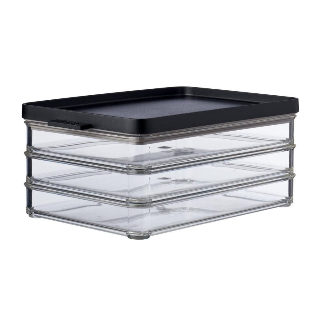- každá z troch priehľadných vrstiev umožňuje oddelené skladovanie rôznych potravín bez miešania chutí a vôní
