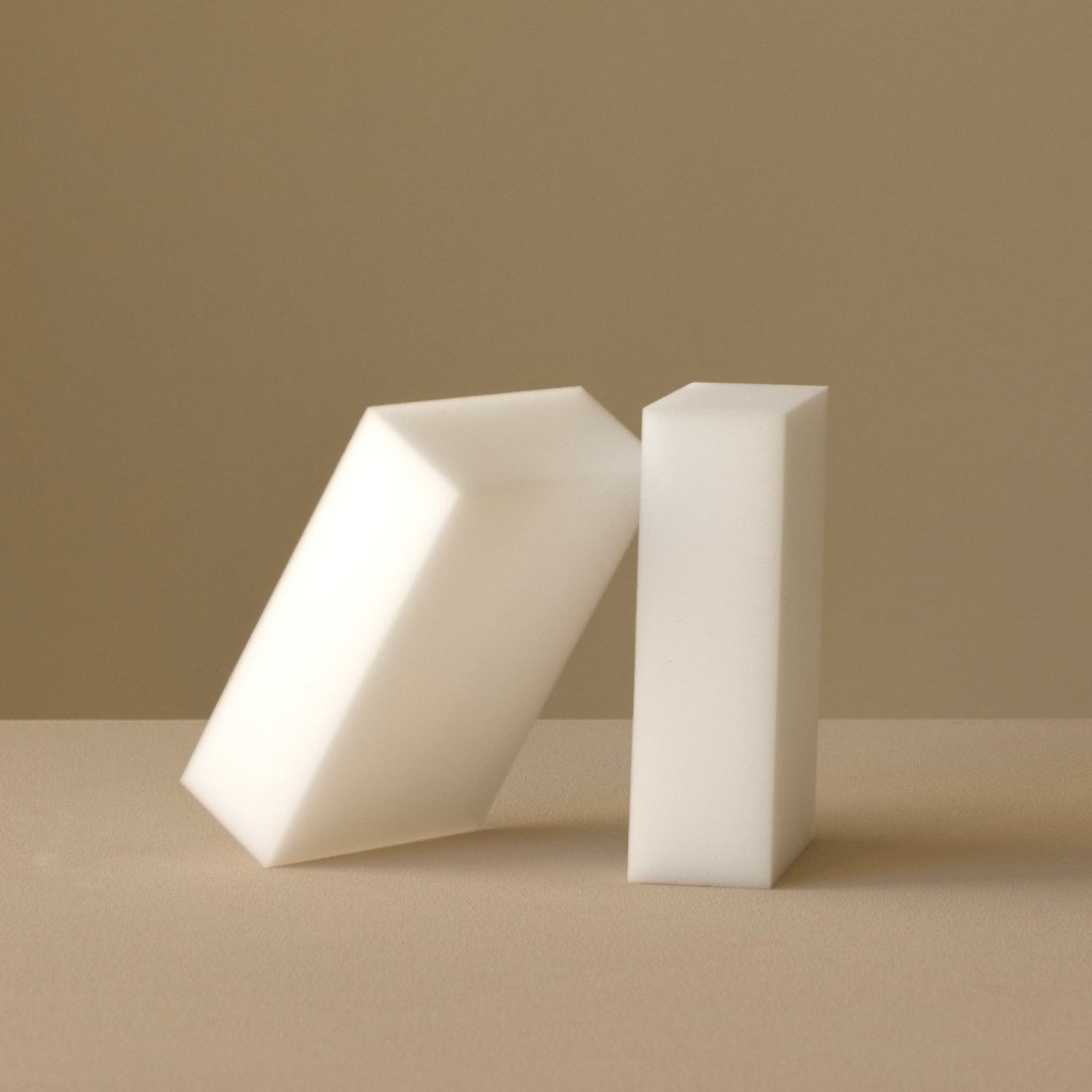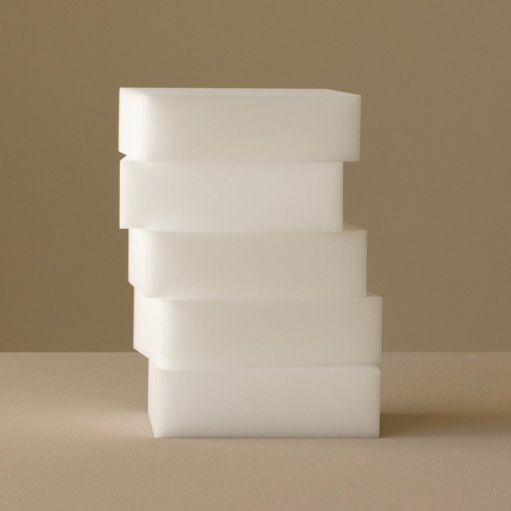 - hubky sú vyrobené zo 100 % melamínovej peny, ktorá je známa svojimi výnimočnými čistiacimi vlastnosťami bez použitia chemikálií