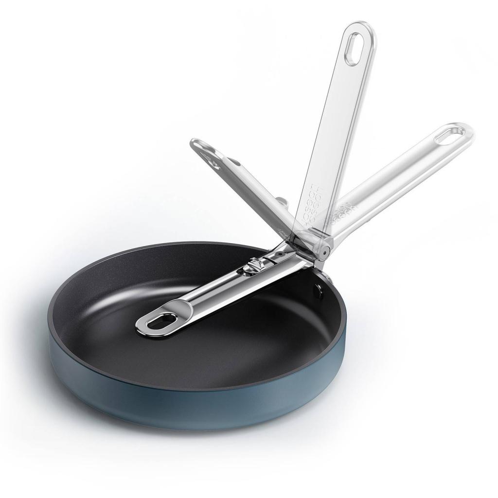 - Vďaka skladaciemu mechanizmu možno panvicu ľahko stohovať s ďalšími kusmi riadu, čo výrazne uľahčuje organizáciu kuchynského priestoru.