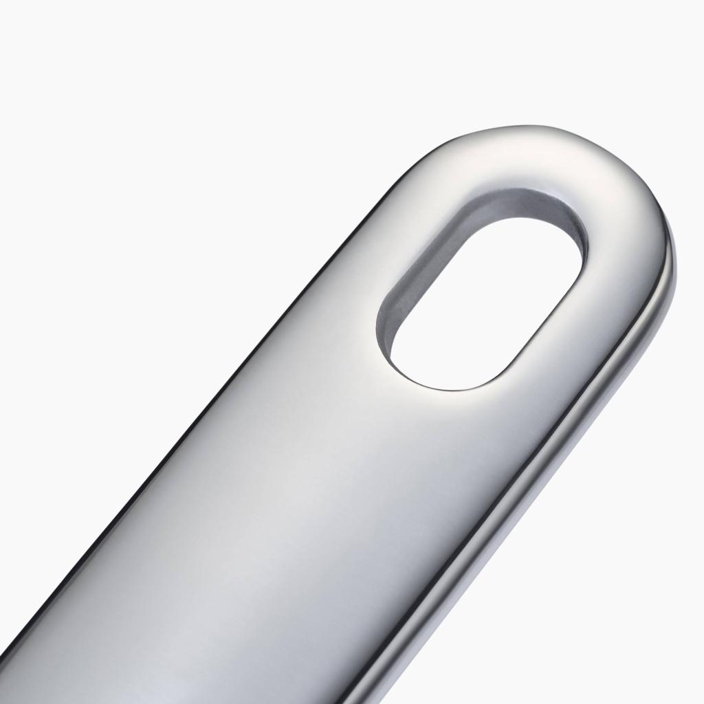 - Panvica je navyše vybavená pevnou pomocnou rukoväťou na protiľahlej strane, ktorá uľahčuje manipuláciu oboma rukami pri prenášaní plne naloženej nádoby.