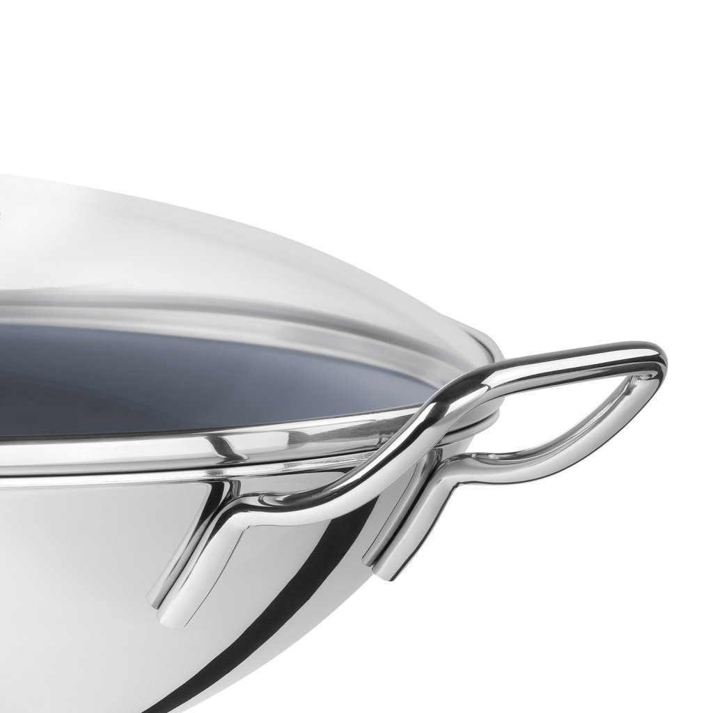 Panvica Wok ZWILLING® Plus je vyrobená z 3-vrstvového materiálu SIGMA Clad, ktorý zaručuje rýchle a úplne rovnomerné rozloženie tepla až do okrajov stien. Vnútorné extra silné hliníkové jadro je obalené ušľachtilou nehrdzavejúcou oceľou 18/10 odolnou proti poškrabaniu, z vonkajšej strany zase vrstvou z magnetickej ušľachtilej ocele, ktorá zaisťuje možnosť použitia na indukcii.