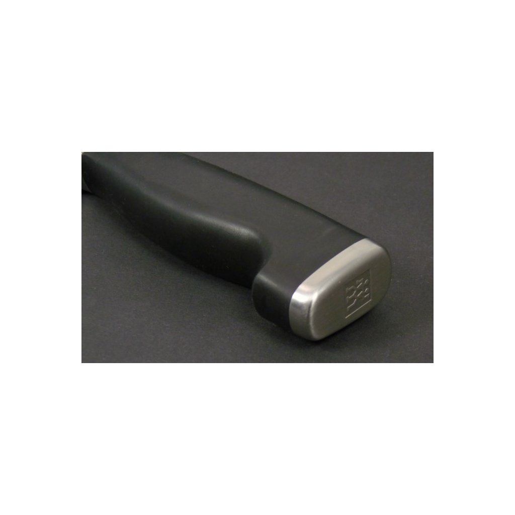 Na päte rukoväti je aplikácia z nehrdzavejúcej ocele s logom značky ZWILLING. Nôž tak získava viditeľné označenie exkluzivity a spoľahlivosti. Premyslenosť dizajnu nožov TWIN® Four Star II oceníte najlepšie vo chvíli, keď zistíte, že aplikácia tiež pomáha dokonalému vyváženiu noža.