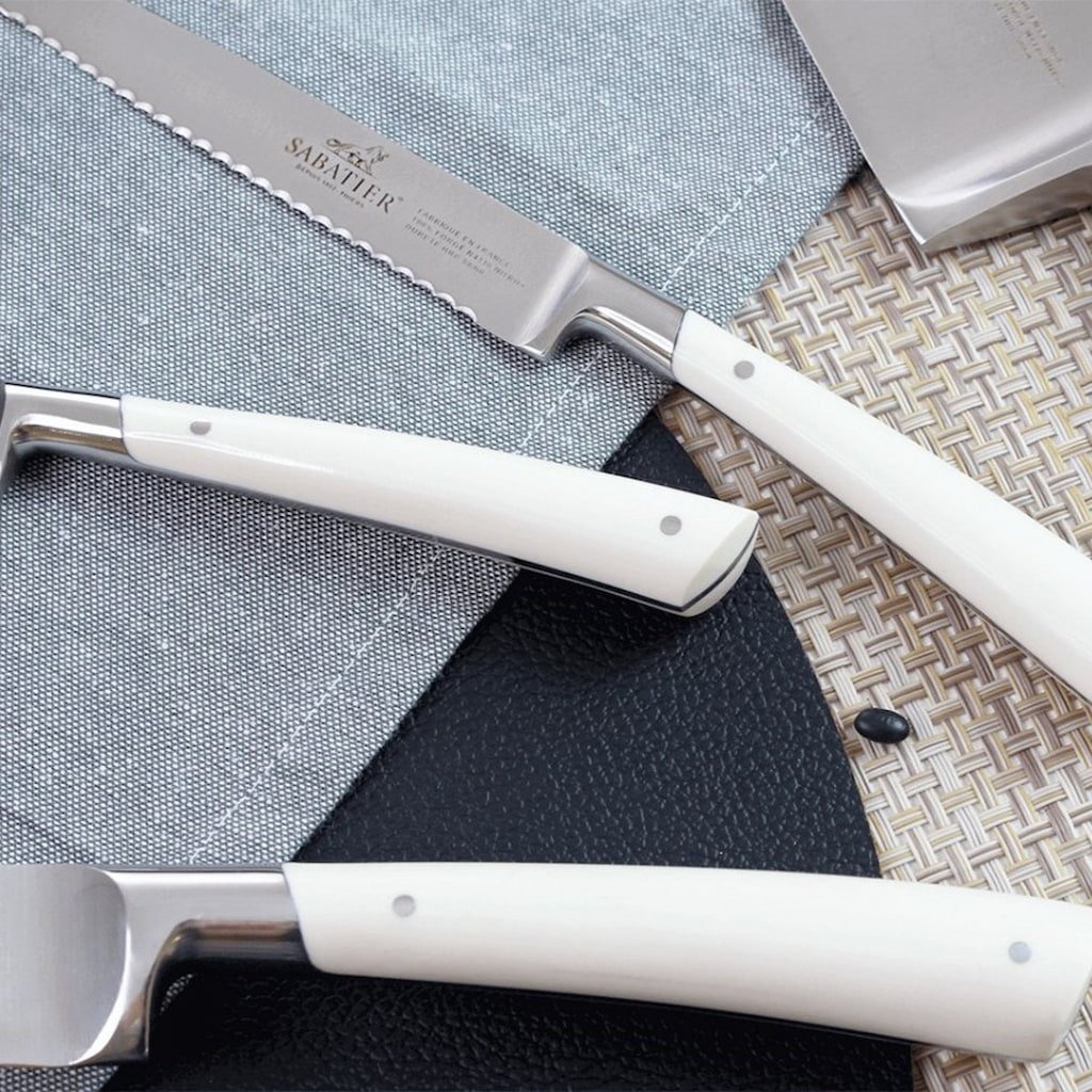 - perleťovo biela farba rukovätí dodáva nožom luxusný vzhľad a dobre ladí s nerezovým leskom čepeľou