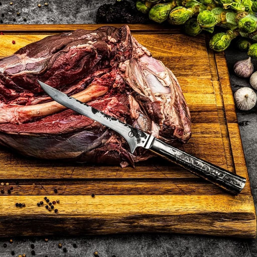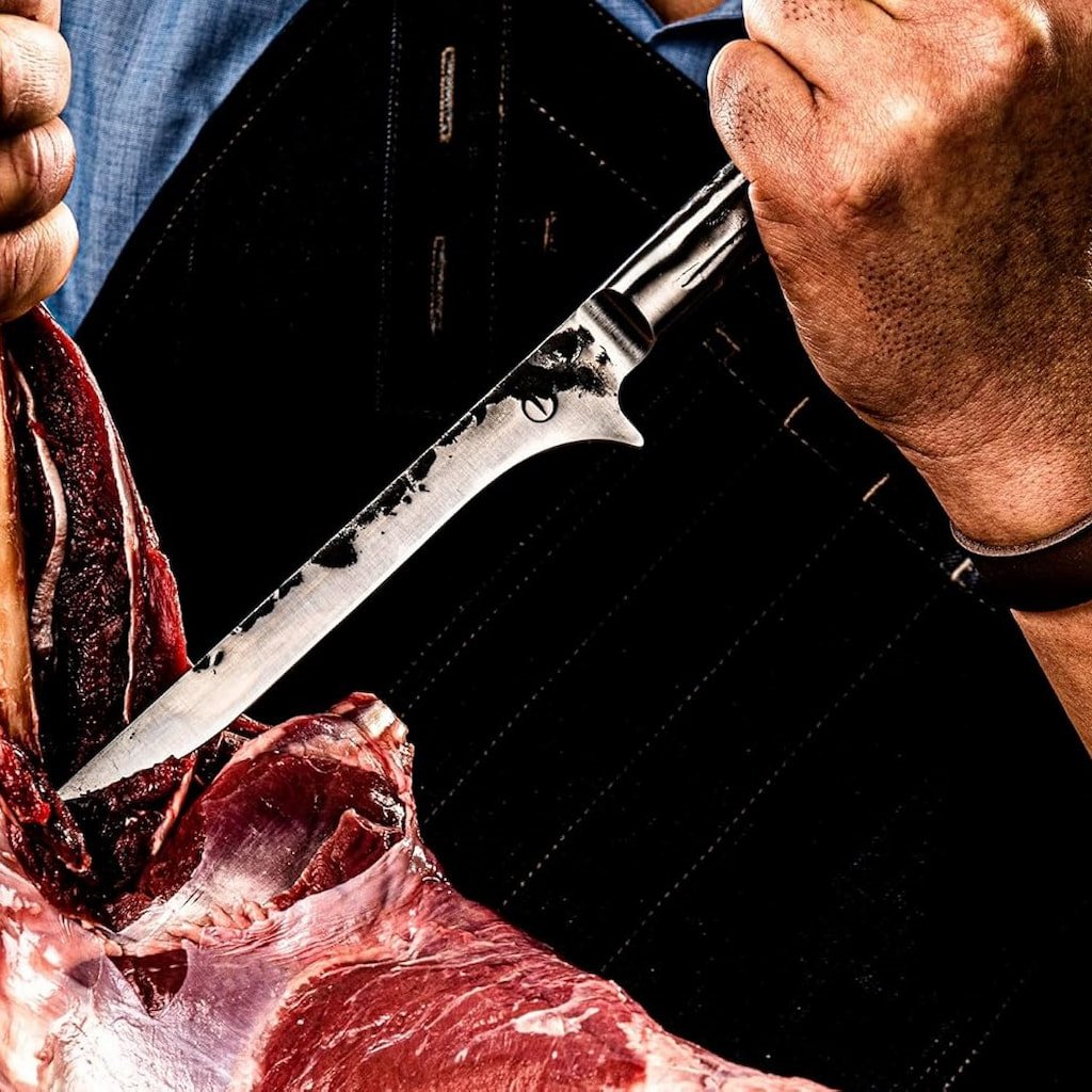 - vďaka dlhej a úzkej čepeli umožňuje ľahké manévrovanie aj v ťažko prístupných miestach na hydine alebo červenom mäse