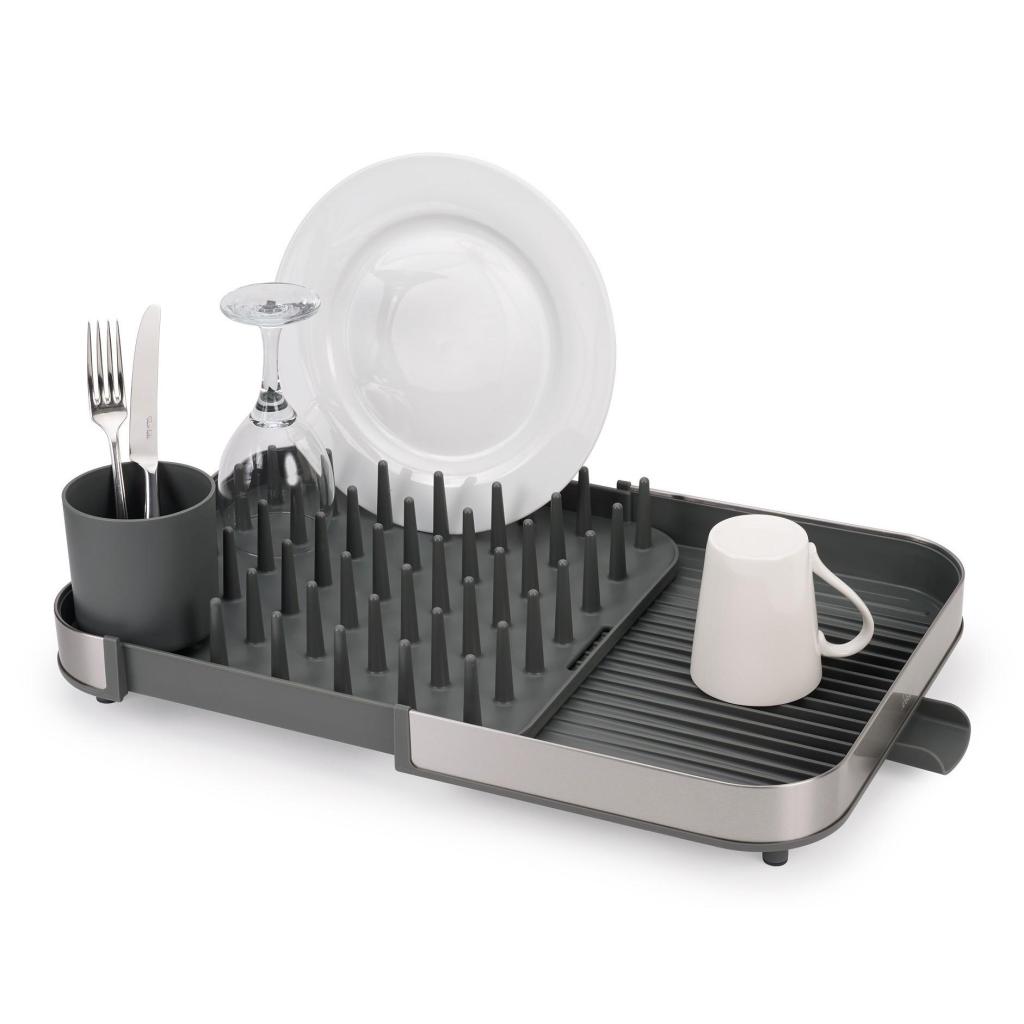 - Vďaka šikovnému výsuvnému mechanizmu ľahko zväčšíte odkvapkávaciu plochu takmer na dvojnásobok, takže bez problémov usušíte aj väčšie množstvo tanierov, hrnčekov a pohárov po rodinnom obede.