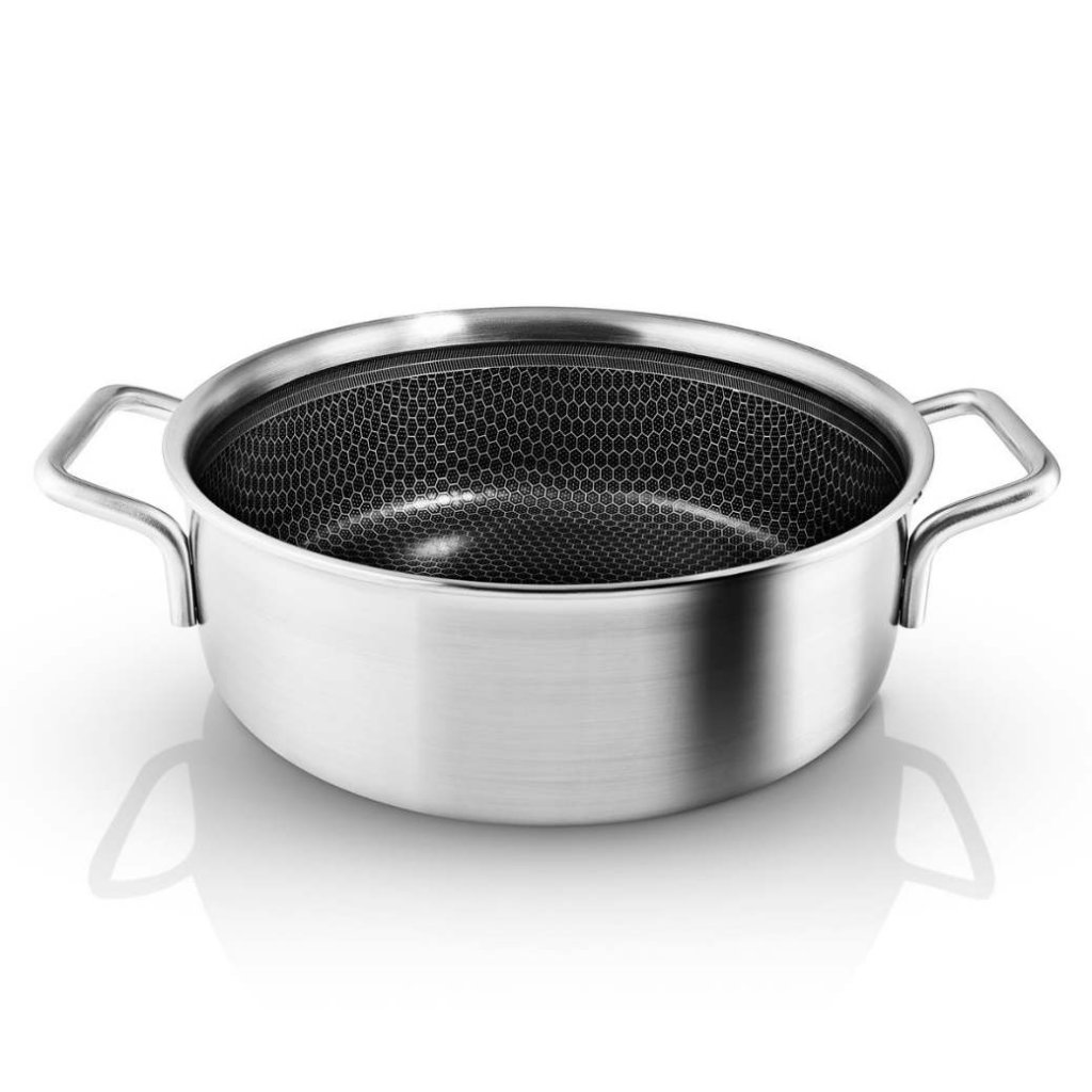 - nerezová panvica na soté kombinuje tradičný dizajn EVA TRIO s inovatívnymi materiálmi pre vylepšené varenie
