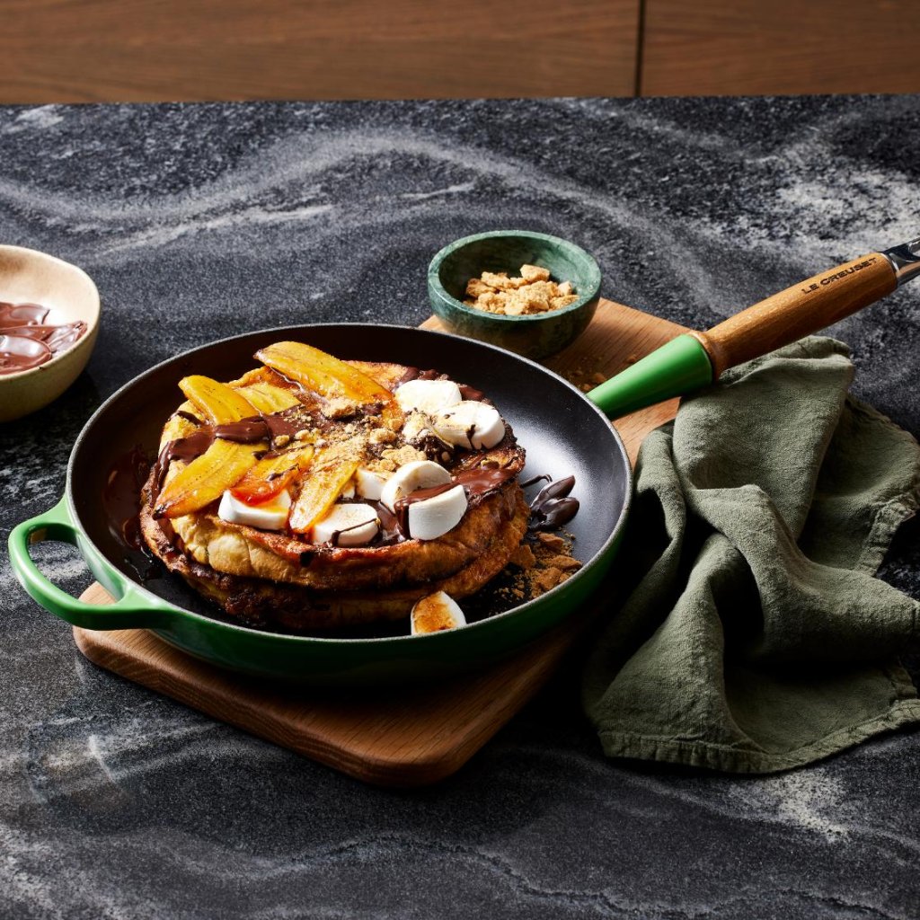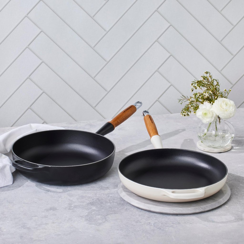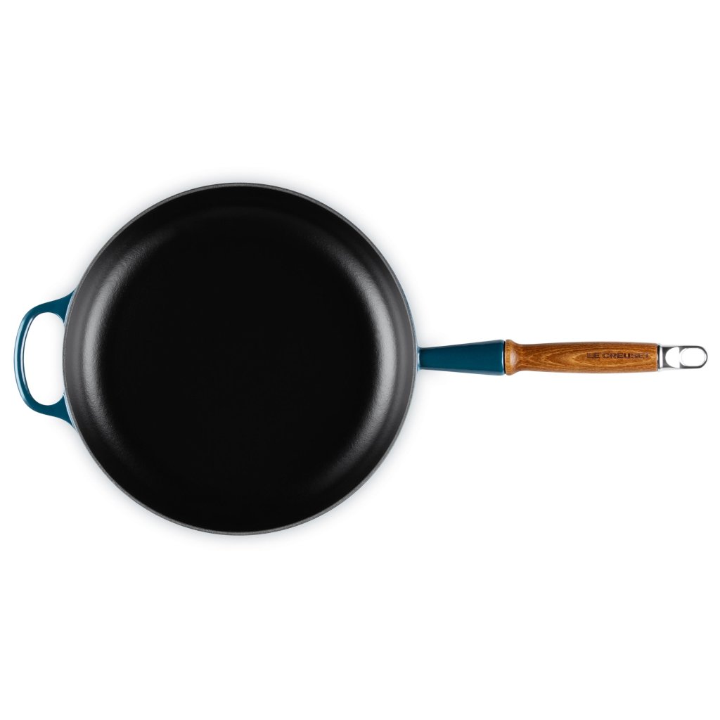 - Liatinová panvica Le Creuset vo farebnom prevedení NUIT s drevenou rukoväťou je vynikajúcou voľbou pre každodenné varenie, od prudkého opekania mäsa až po restovanie zeleniny.