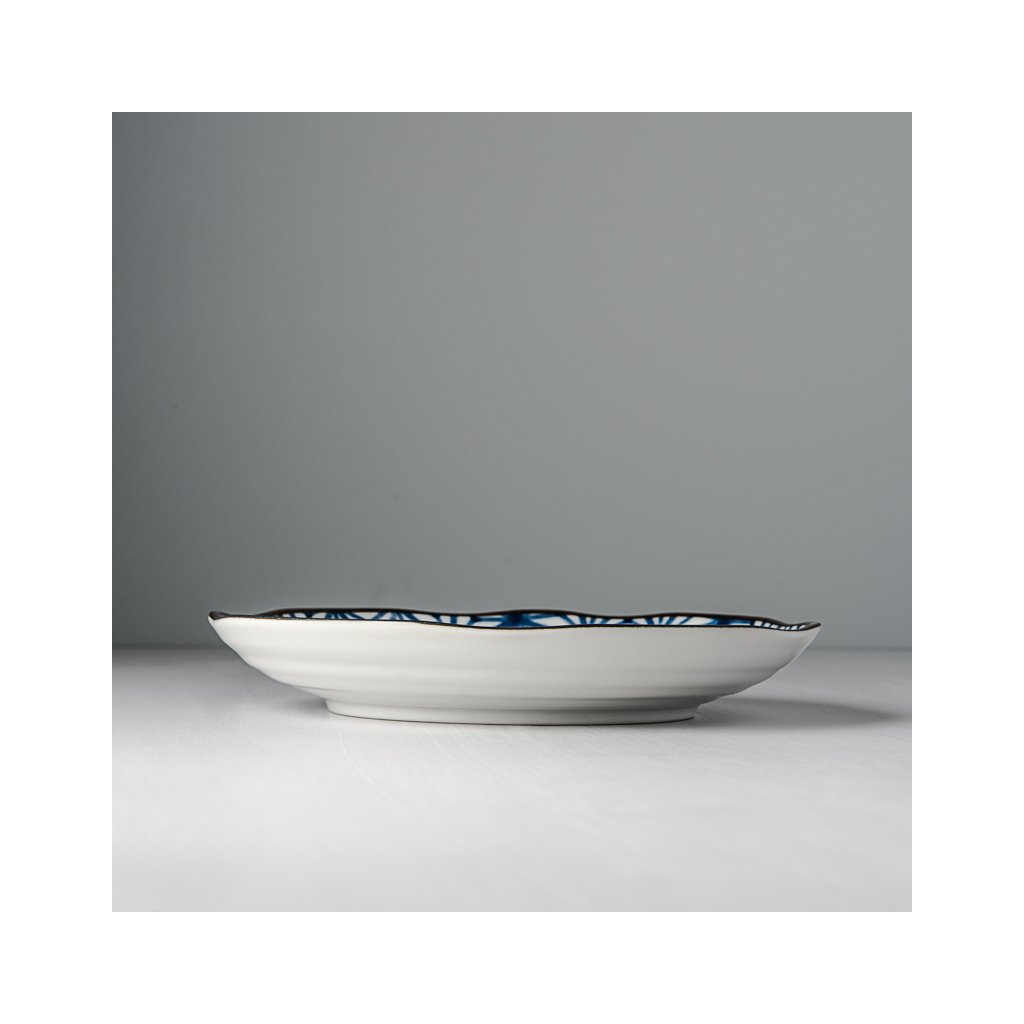 Plytký tanier z kolekcie Indigo Ikat od MIJ je ručne vyrobený z odolnej prírodnej keramiky, ktorá neobsahuje škodlivé prímesi ani ťažké kovy. Vyrábajú ho japonskí majstri, ktorých tradícia siaha až do 12. storočia. Farby sú vysoko kvalitné, neodlupujú sa a neobsahujú žiadne škodlivé látky.