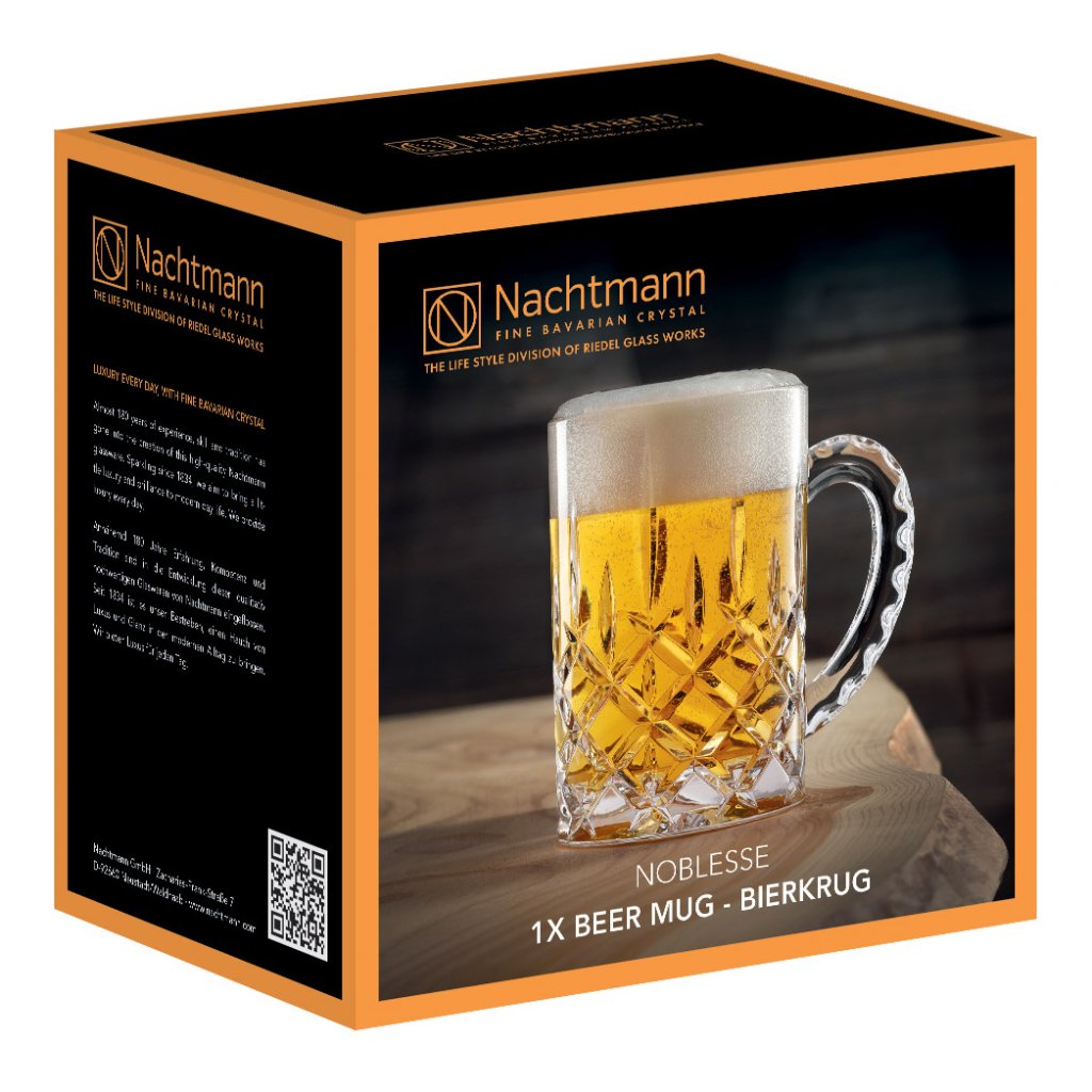 Klasický robustný pohár na pivo s veľkým uchom z kolekcie Noblesse od nemeckého výrobcu Nachtmann pozdvihne váš pôžitok z obľúbeného drinku o úroveň vyššie. Tradičný "polliter" s masívnym dnom je navrhnutý v atraktívnom dizajne. Krištáľové sklo zdobené brúseným dekorom v klasickom pánskom štýle dodá punc vybranej elegancie akémukoľvek štýlu vybavenia.