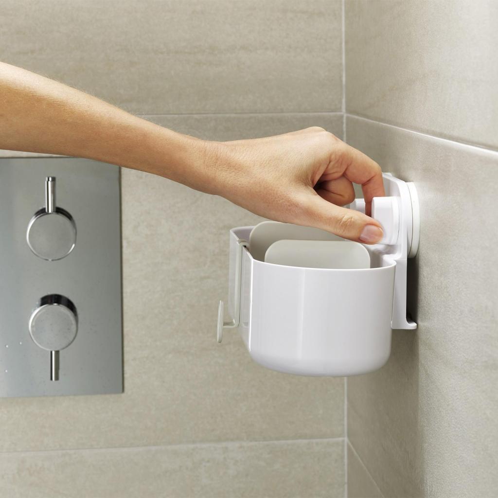 - Polička sa upevňuje pomocou účinných prísaviek na hladký neporézny povrch, takže inštalácia prebieha bez vŕtania a poškodenia obkladov.