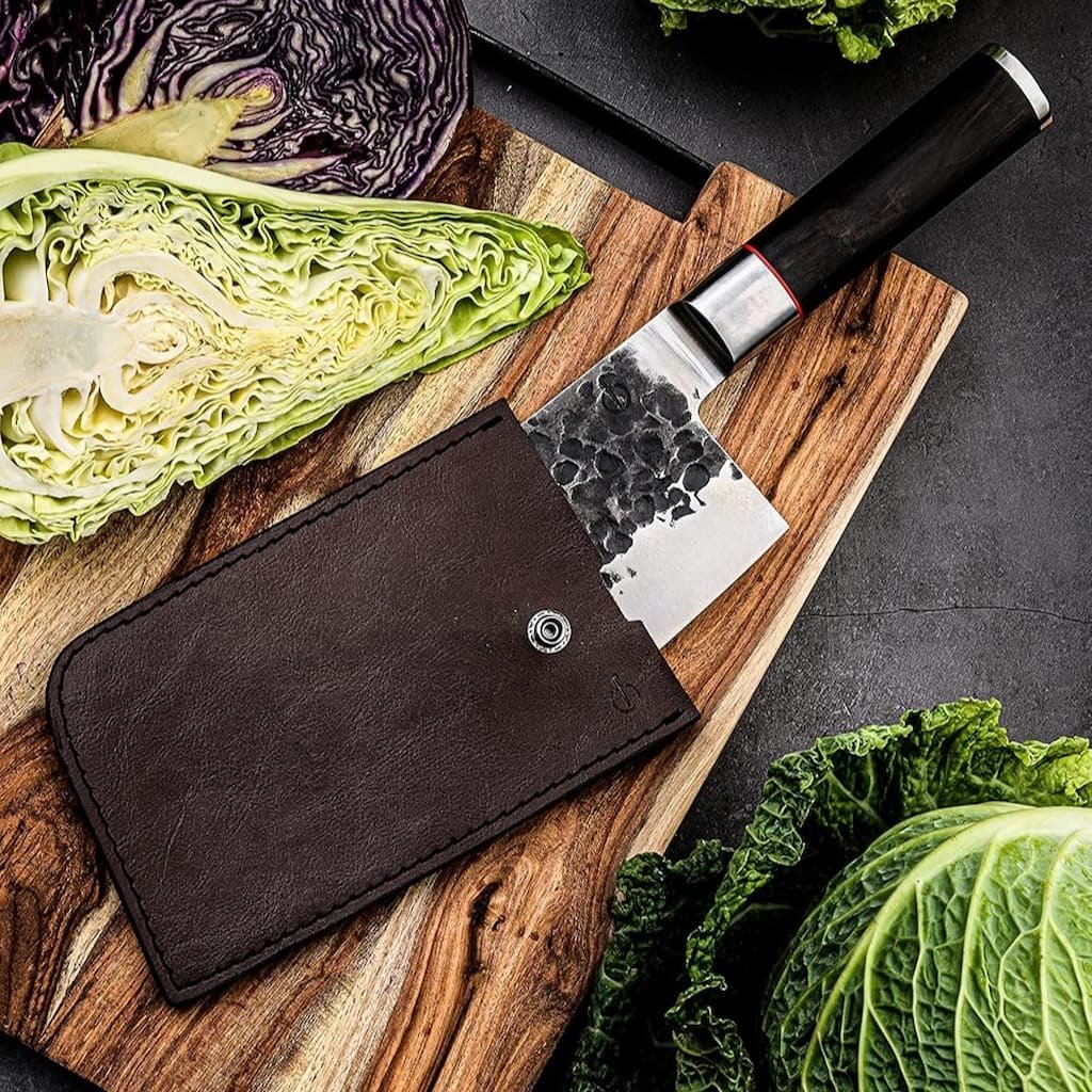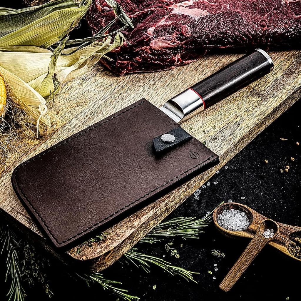 - kožené puzdro na sekáčik na mäso Forged je navrhnuté pre bezpečné uloženie a ochranu čepele pred poškodením počas skladovania alebo prepravy