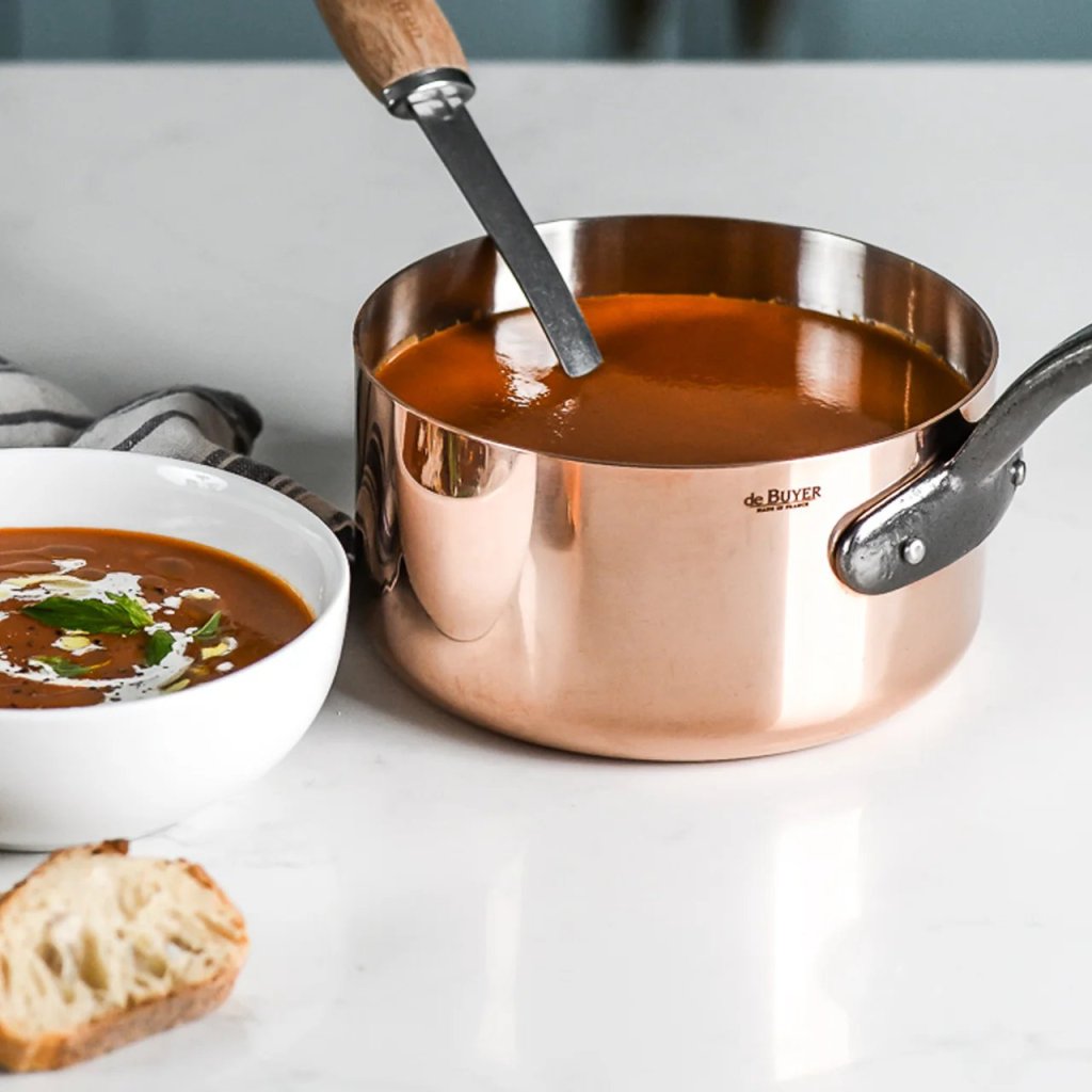 - medený rajnica de Buyer PRIMA MATERA s priemerom 16 cm je ideálnou voľbou pre redukčné varenie a profesionálnu prezentáciu v otvorených kuchyniach