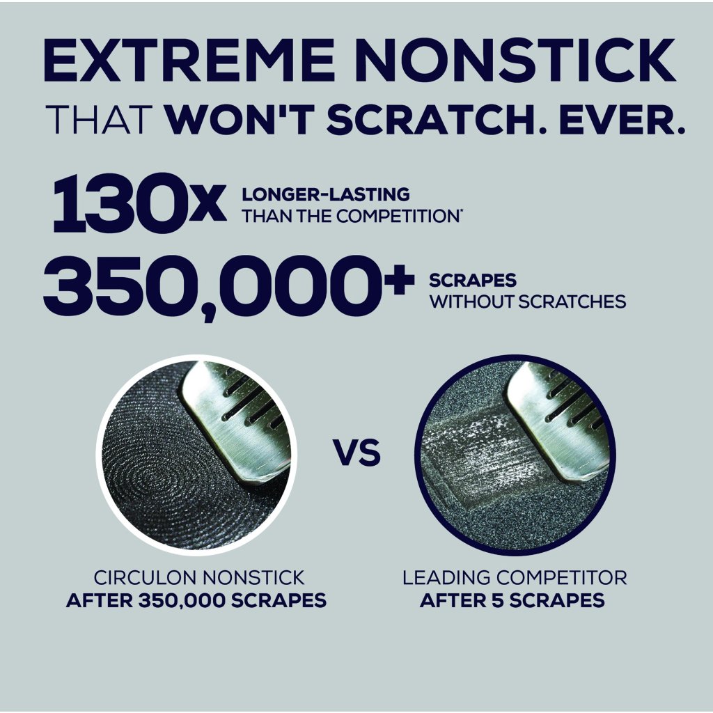 - inovatívny nepriľnavý rajnica Circulon SCRATCHDEFENSE A1 prináša revolučnú odolnosť proti poškriabaniu a extrémne dlhú životnosť