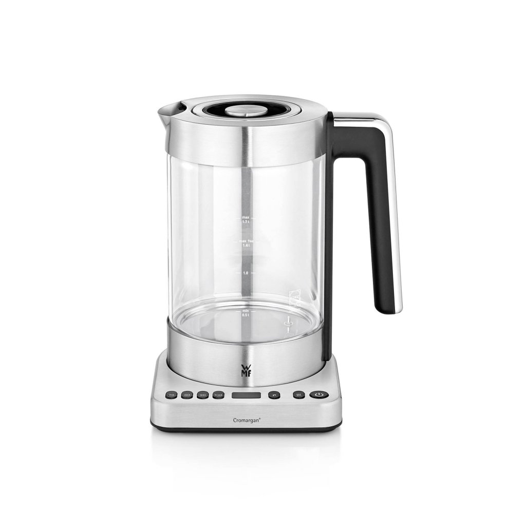 Krásna rýchlovarná kanvica LONO 2v1 od nemeckej značky WMF je ideálna na rýchlu prípravu dokonalého čaju. Je vybavená sitkom na čaj XXL a v závislosti od druhu čaju si na nej môžete nastaviť štyri teplotné stupne. Bola vyrobená z vysokokvalitného borosilikátového skla SCHOTT DURAN® a nehrdzavejúcej ocele Cromargan®. Ponúka aj externý indikátor objemu , ktorý indikuje minimálne a maximálne naplnenie. Na jednoduché čistenie je veko alebo filter odnímateľný.