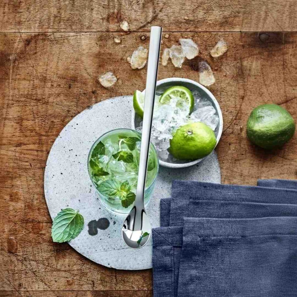 Dlhá lyžica na nápoje Nuova s dĺžkou 22 cm je určená na miešanie nápojov vo vysokých pohároch. Je ideálny na koktaily a latte macchiato. Rovnako dobre sa však hodí aj na jogurt alebo zmrzlinu a dá sa použiť aj na naberanie džemu.