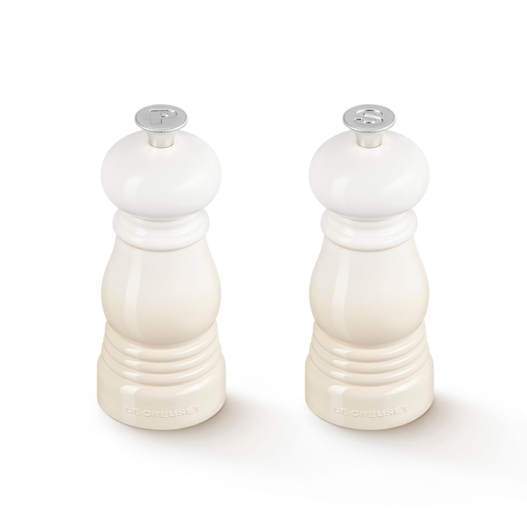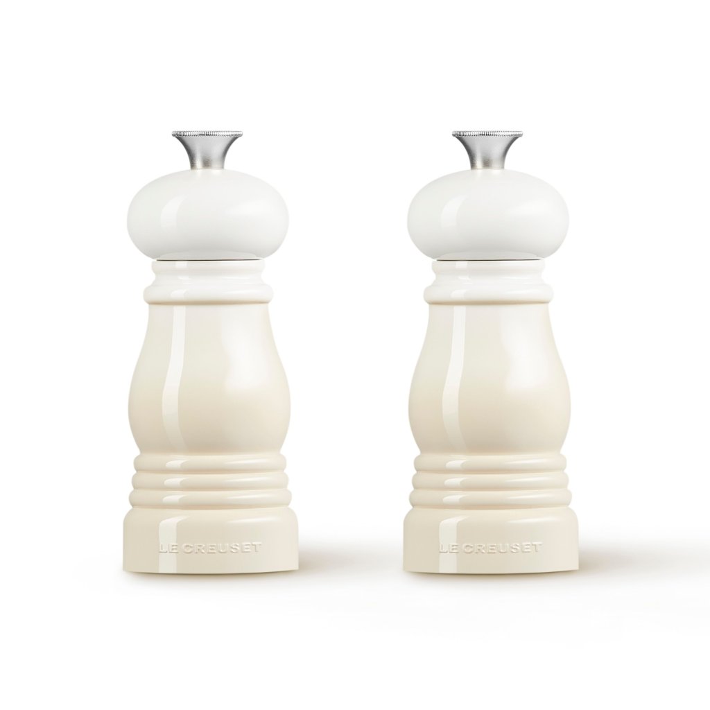 - Sada mini mlynčekov na soľ a korenie Le Creuset v odtieni MERINGUE prináša do kuchyne štýl, funkčnosť aj radosť z každodenného dochucovania jedál.