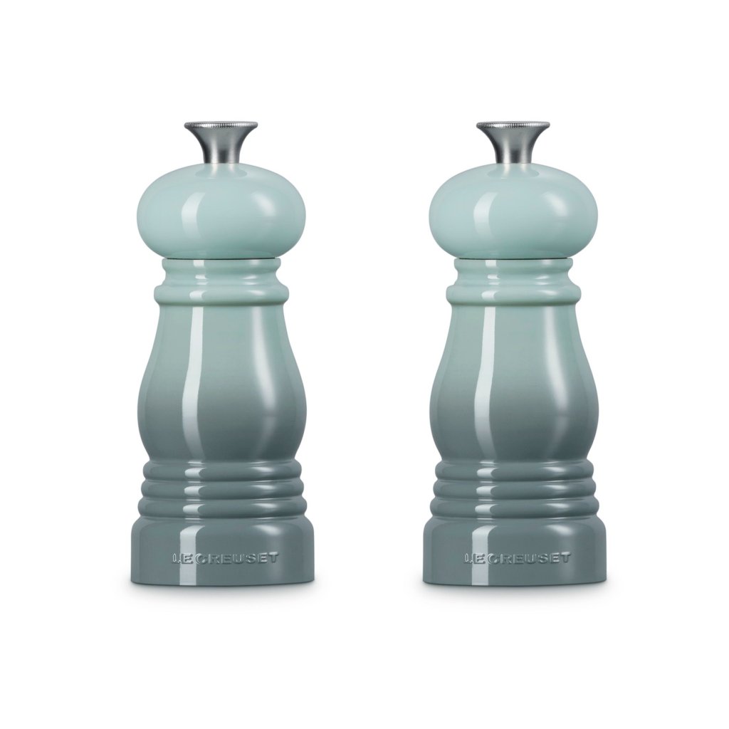- Sada mini mlynčekov na soľ a korenie Le Creuset v odtieni SEA SALT prináša do kuchyne štýl, funkčnosť aj radosť z každodenného dochucovania jedál.