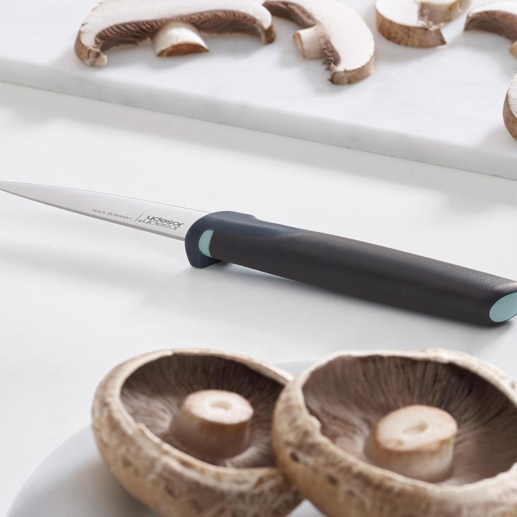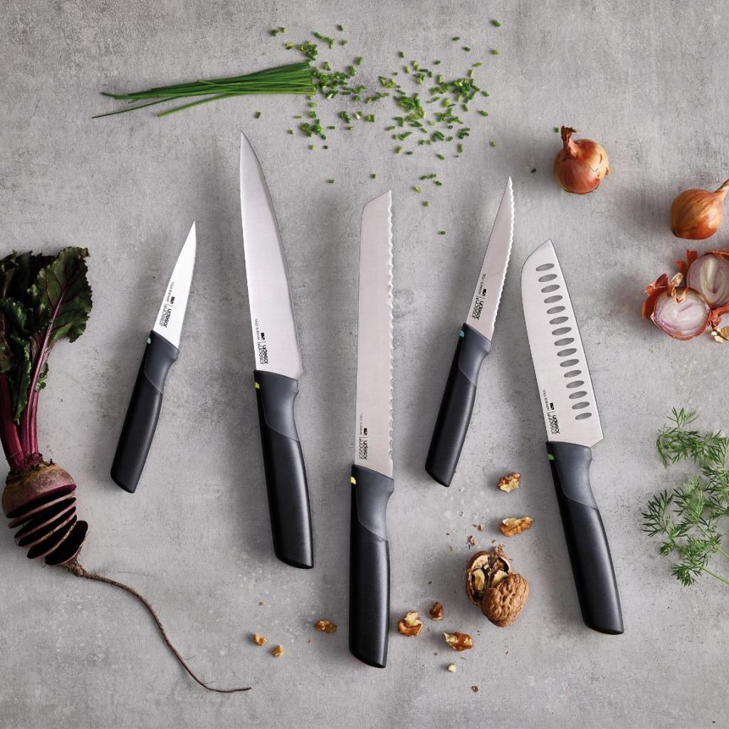 - Súprava 5 kuchynských nožov Joseph Joseph ELEVATE OPAL ponúka premyslenú kombináciu nožov na každodenné varenie, vďaka ktorým zvládnete krájanie, porciovanie aj jemnú prípravu surovín bez nutnosti hľadať ďalšie náčinie.