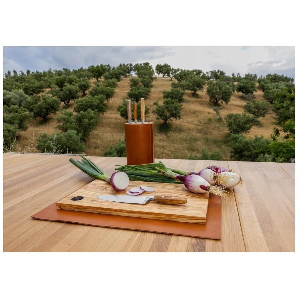 - Tvarovaná kovaná čepeľ je spojená s unikátne prefarbenou rukoväťou z olivového dreva, vďaka ktorej je každý nôž originál