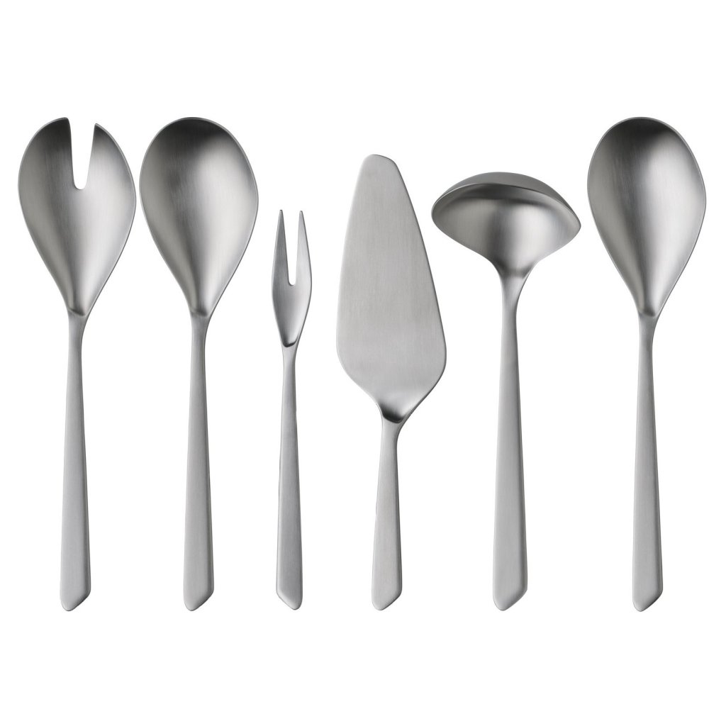 - súčasťou je šalátový príbor, servírovacia lyžica, naberačka, servírovacia vidlička aj tortová lopatka pre komfortné podávanie pokrmov