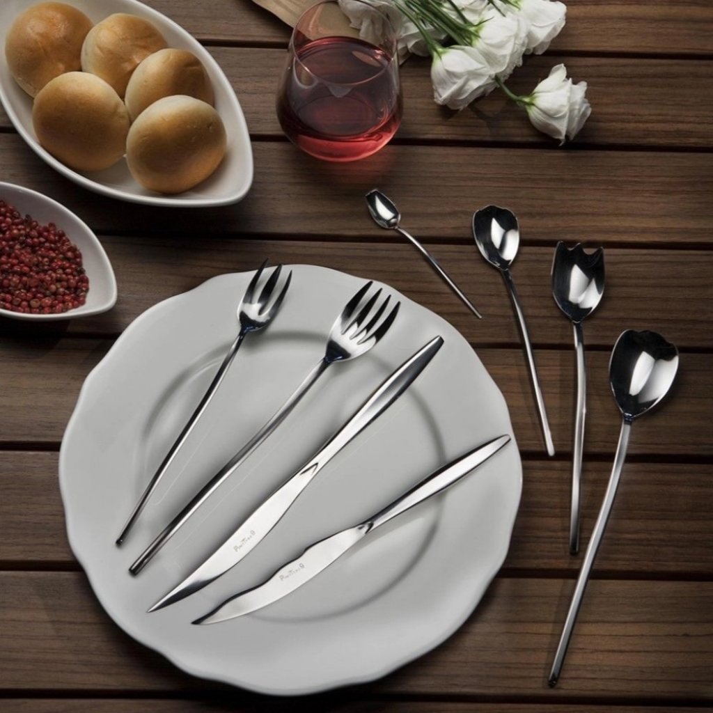 - vďaka predĺženým rukovätiam a detailnému tvarovaniu sa príbor pohodlne drží a vytvára jedinečný vizuálny dojem