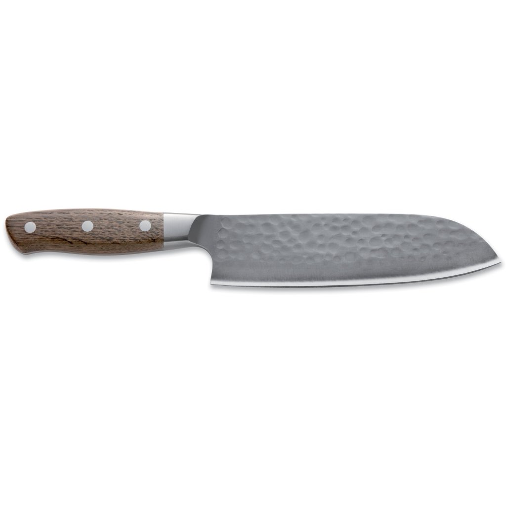 - nôž santoku, ideálny na rôzne kuchynské úlohy, od krájania mäsa po sekanie zeleniny, čo z neho robí univerzálny nástroj